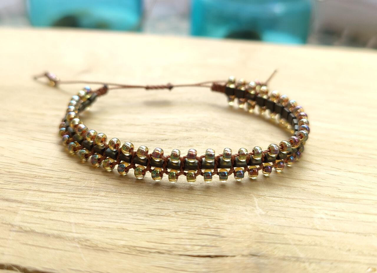 Creo pulseras únicas, principalmente utilizando cordón de cuero de 1 mm y cuentas de vidrio japonesas de alta calidad.Cada pieza está hecha a mano y diseñada individualmente, inspirada en tonos tierra, materiales naturales y la libertad de crear. Sin repeticiones, sin producción en masa.